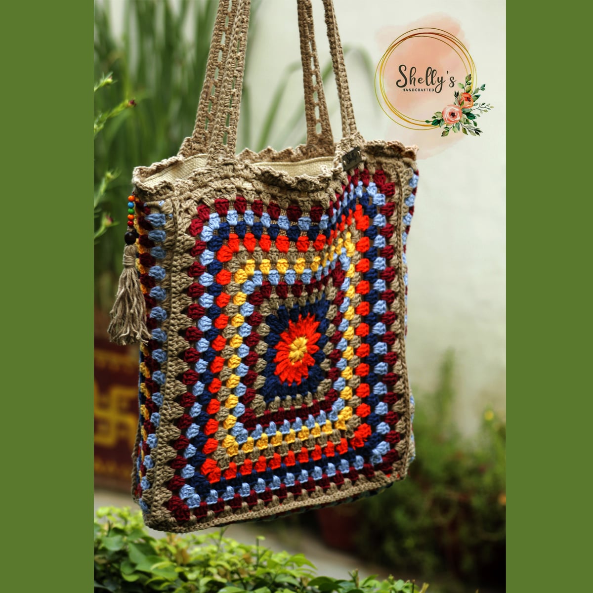 Bring out the Boho vibes in you with this handcrafted bag that bursts of colours. Made with 100% cotton yarn and fitted with a jute fabric lining, this bag has a zipper pocket inside. Also a tassel with colourful beads adds to the elegance n fun element.